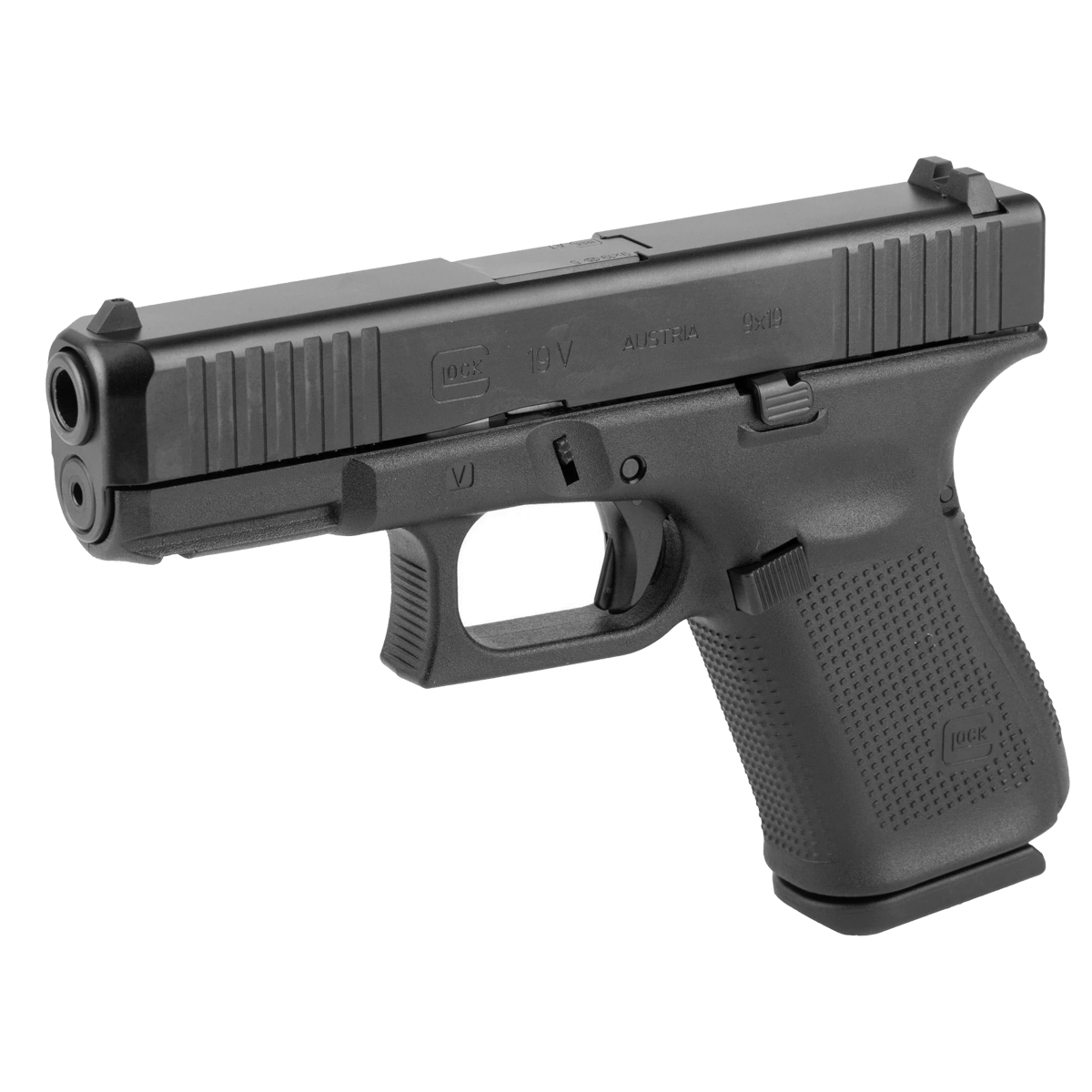 The Glock 19V Gen5 features the Safe Action striker-fired system that provides trigger safety, firing pin safety, and drop safety in a consistent trigger pull. The striker-fired action eliminates external hammers and provides a consistent trigger mechanism. The Gen5 platform includes improvements over previous generations including enhanced ergonomics and refined internals.