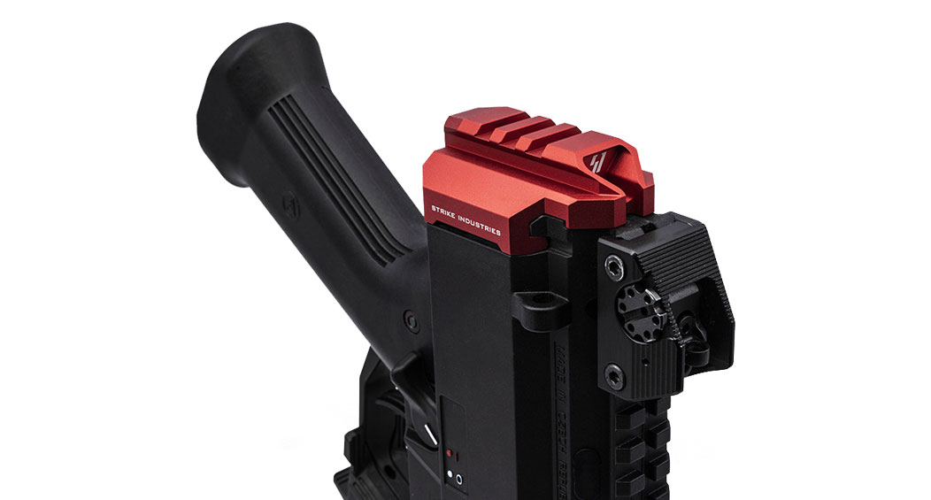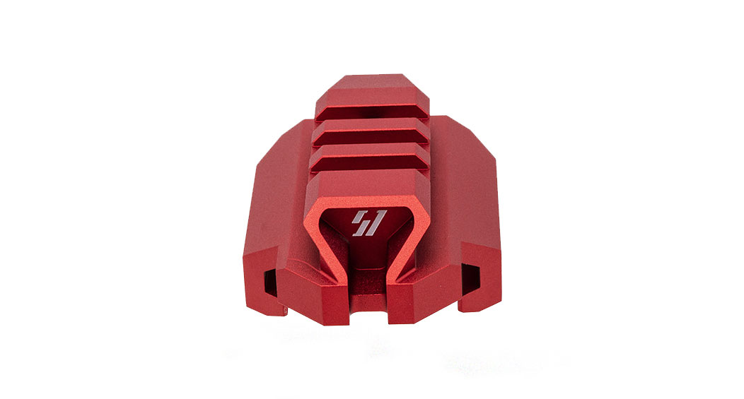 The red anodized finish creates a bold visual statement perfect for custom CZ Scorpion builds emphasizing distinctive aesthetics. The color coordinates well with other red Strike Industries components for comprehensive color theming, or serves as a striking accent piece on otherwise black configurations. Beyond appearance, the anodizing provides surface protection against wear and corrosion while the red color makes the adapter immediately identifiable.