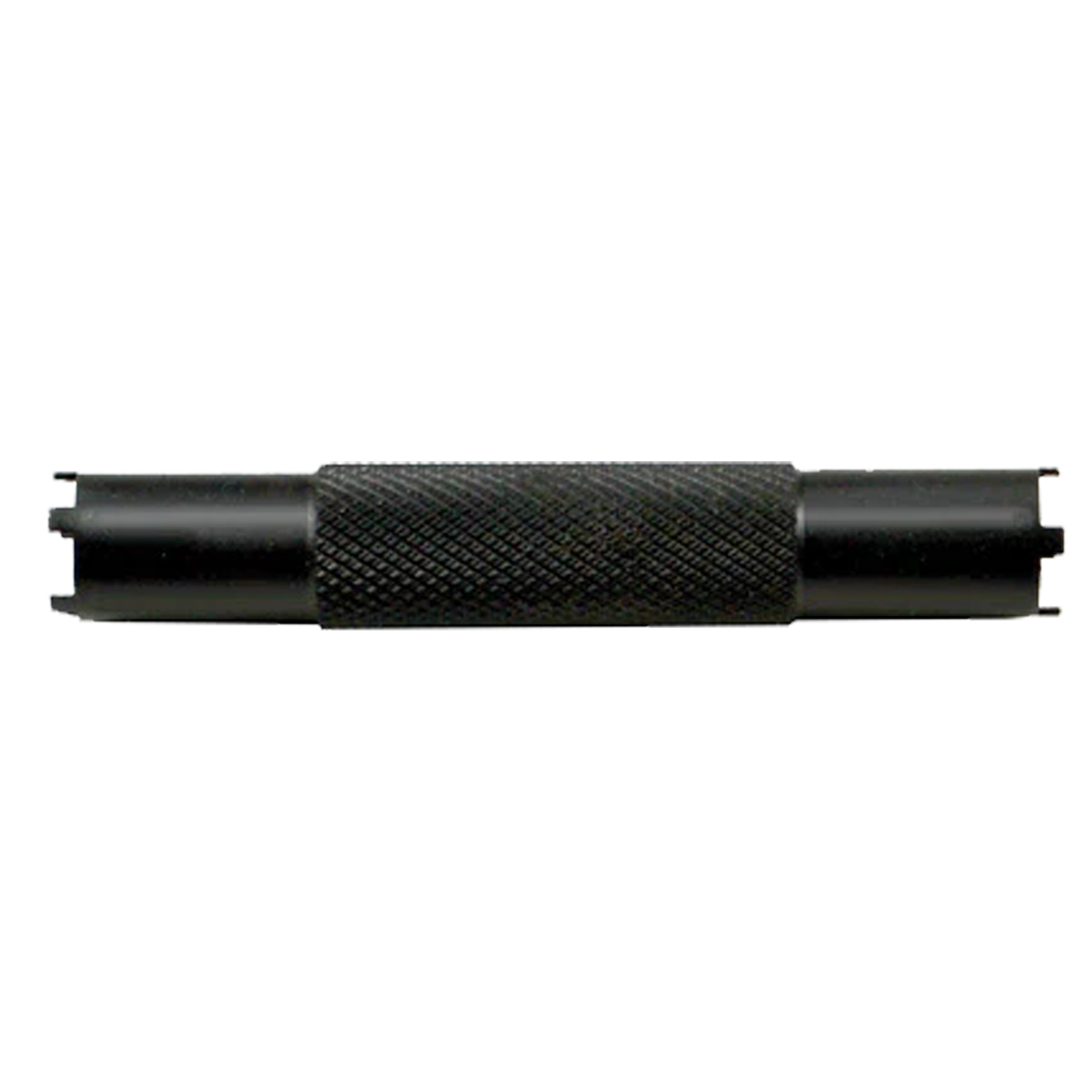 The dual-ended wrench design provides two prong configurations on a single tool. One end features 4-prong configuration while the opposite end features 5-prong configuration. This design accommodates both A1 and A2 front sight post adjustment requirements without requiring separate tools. The wrench engages the front sight post adjustment detent for elevation changes.