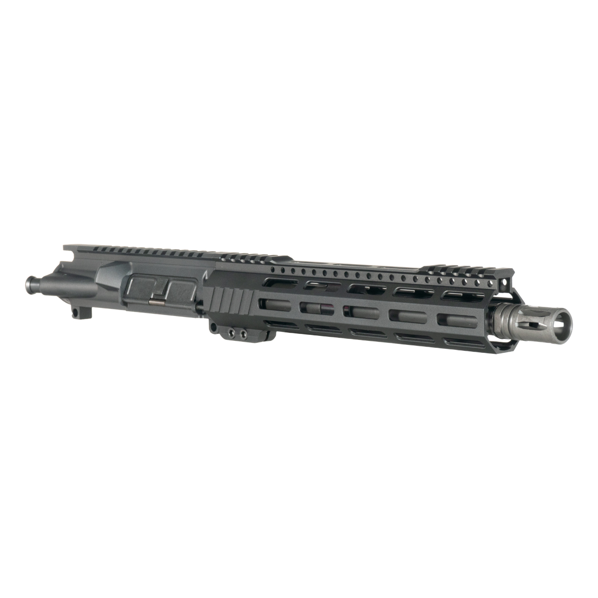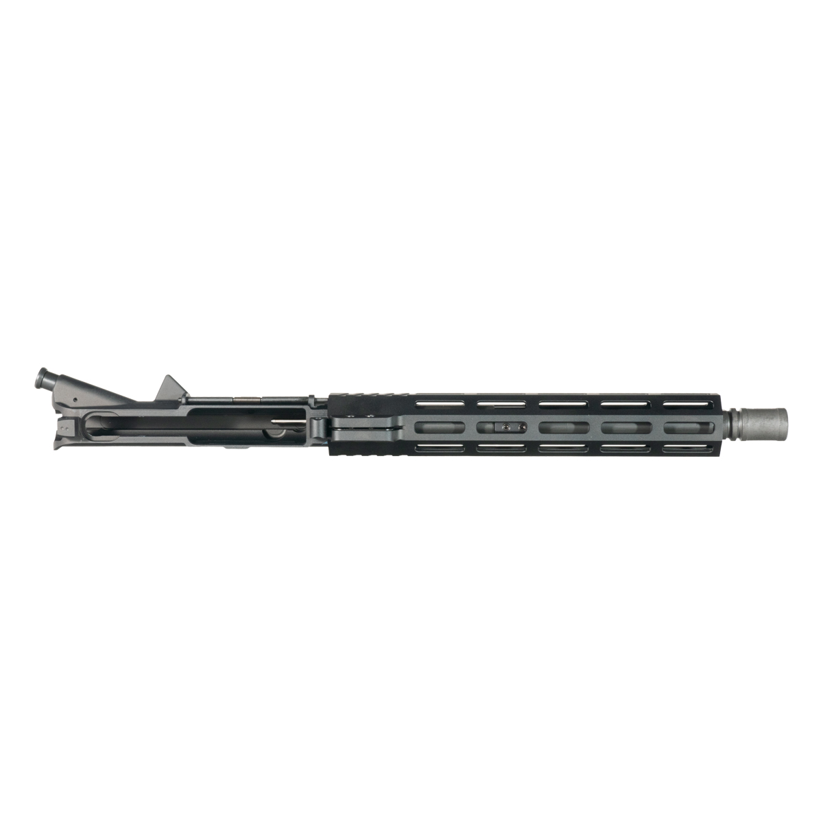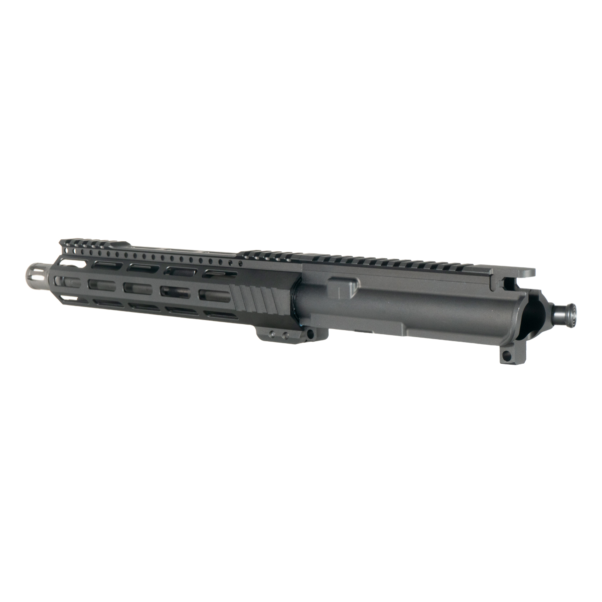 The 10 inch handguard features M-Lok attachment slots for modular accessory placement. The freefloat design isolates the barrel from handguard contact. The 6061-T6 aluminum construction maintains a lightweight profile while providing structural integrity. The nitride finished bolt carrier group provides enhanced corrosion resistance and reduced friction.