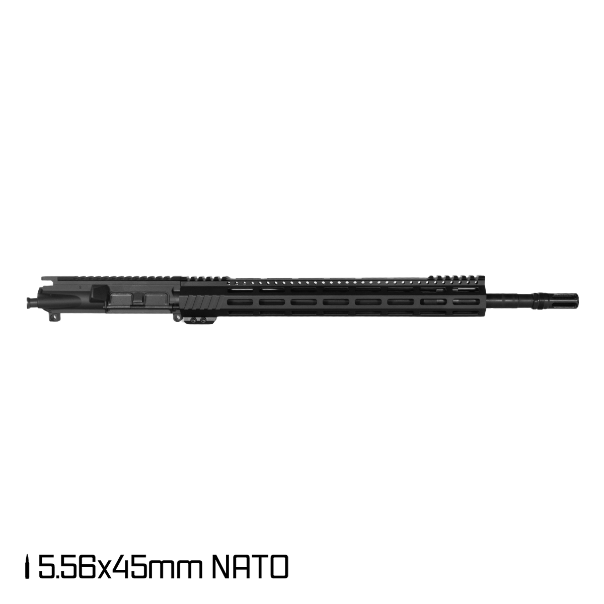 The Aegis Lightweight 18-inch Rifle-Gas 1:7 5.56 NATO AR-15 Freefloat M-Lok Handguard Rifle Upper Build Kit offers a robust assembly for performance-focused gunsmiths. It features an 18-inch Government Profile Barrel made from 4140 gun steel with a nitride finish, providing durability and longevity. The barrel twist rate of 1:7 is optimized for a range of bullet weights, making it suitable for various shooting applications. The upper receiver is crafted from 7075-T6 aluminum and finished with anodization for added strength.