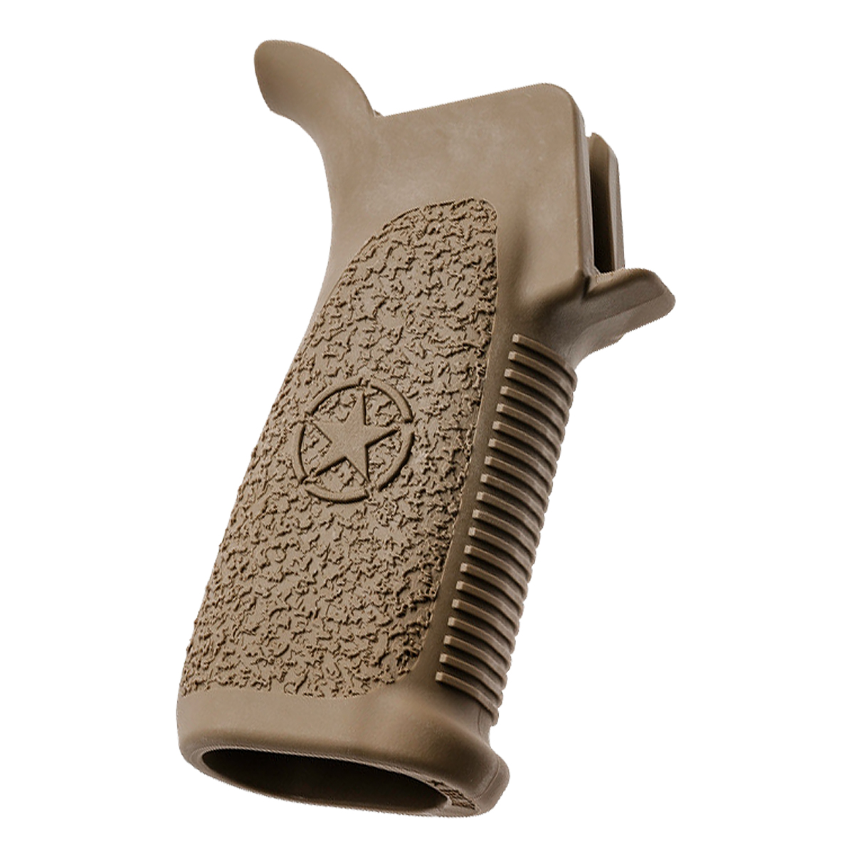 Enhance AR-15 ergonomics with the BCM Mod 4 pistol grip—a precision-engineered grip featuring reduced angle design, aggressive ultra-tactile texture, and high-rise beavertail backstrap. Constructed from impact-resistant polymer with extended forward tang and open bottom weight reduction, this FDE grip delivers secure handling and improved trigger reach for mil-spec AR-15 lower receivers.