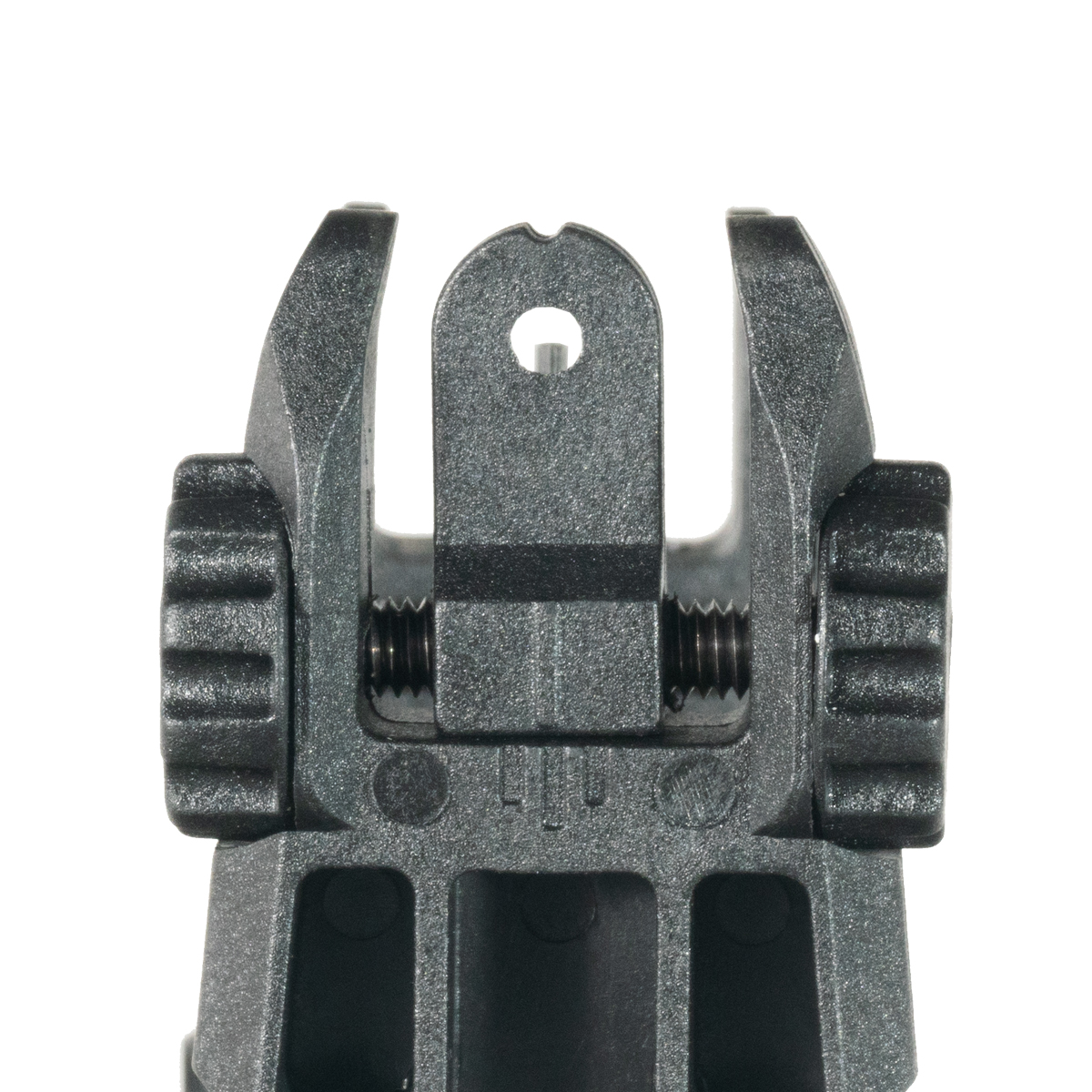 The dual iron sight design provides aiming capability both when folded flat and when deployed upright. This configuration offers flexibility in different shooting scenarios and provides backup aiming options if the primary sight position is compromised. The dual aperture setup accommodates both precision and rapid target acquisition needs.