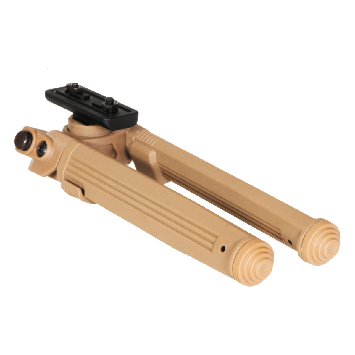 The Compact Adjustable M-Lok Bipod in Flat Dark Earth (FDE) is engineered for optimal performance in tactical applications. Constructed from lightweight and durable polymer material, this bipod ensures stability under various shooting conditions. Its compact design allows for easy transportation and storage, making it an ideal choice for shooters on the move. The M-Lok style facilitates quick attachment to compatible rail systems, providing a secure fit and versatile mounting options.