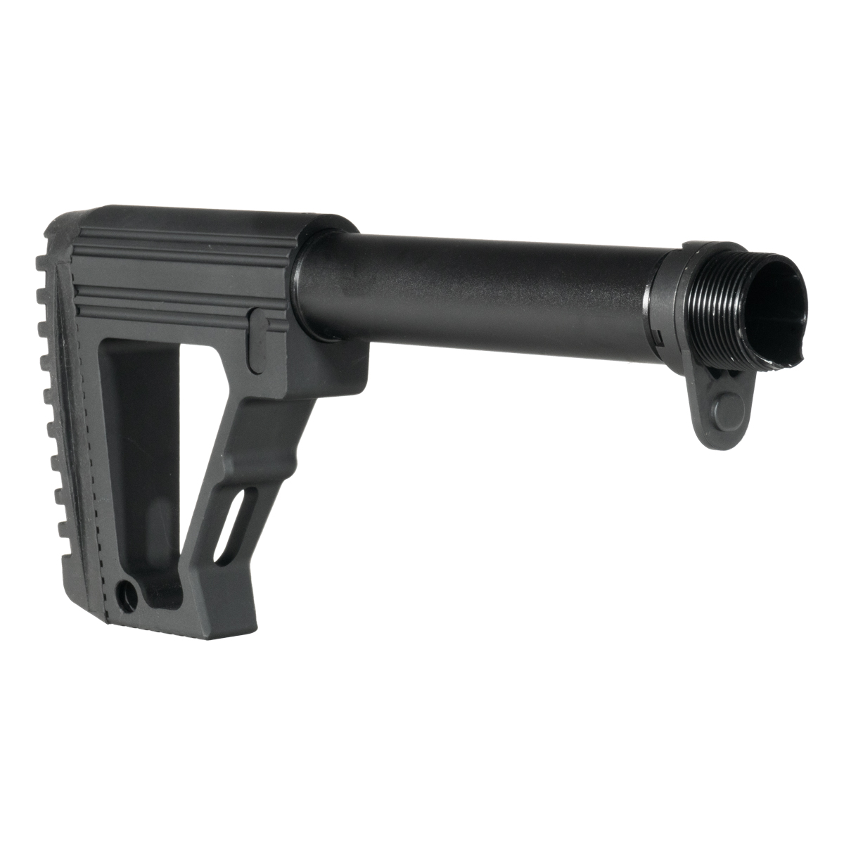 The Defender adjustable aluminum stock features an anodized matte black finish and is compatible with the 9-inch rifle-length receiver extension included in this kit. The buffer tube is a rifle-length receiver extension for standard AR-15 lower receivers. The kit includes a 3.05 oz buffer, recoil spring, castle nut, and end plate as a complete assembly.