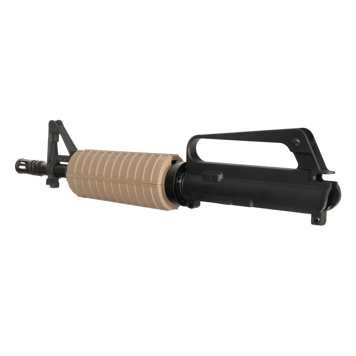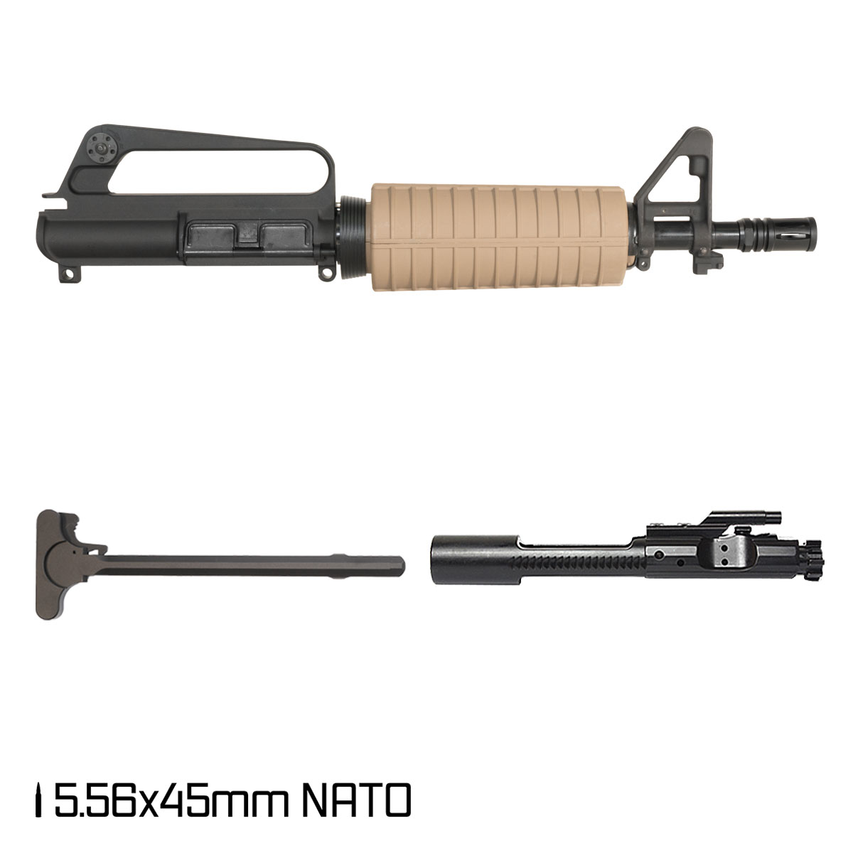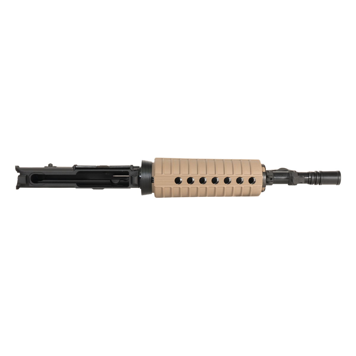 The upper receiver is crafted from 6061-T6 Billet Aluminum with an anodized finish, providing a lightweight yet robust base for your build. The FDE drop-in polymer handguard offers a solid grip without added weight, while the complete bolt carrier group is made from 9310 and 8620 alloy steels, treated with a Nitride finish. A GI Birdcage flash hider completes the package, making this upper suitable for those seeking both function and form in their firearms assembly.