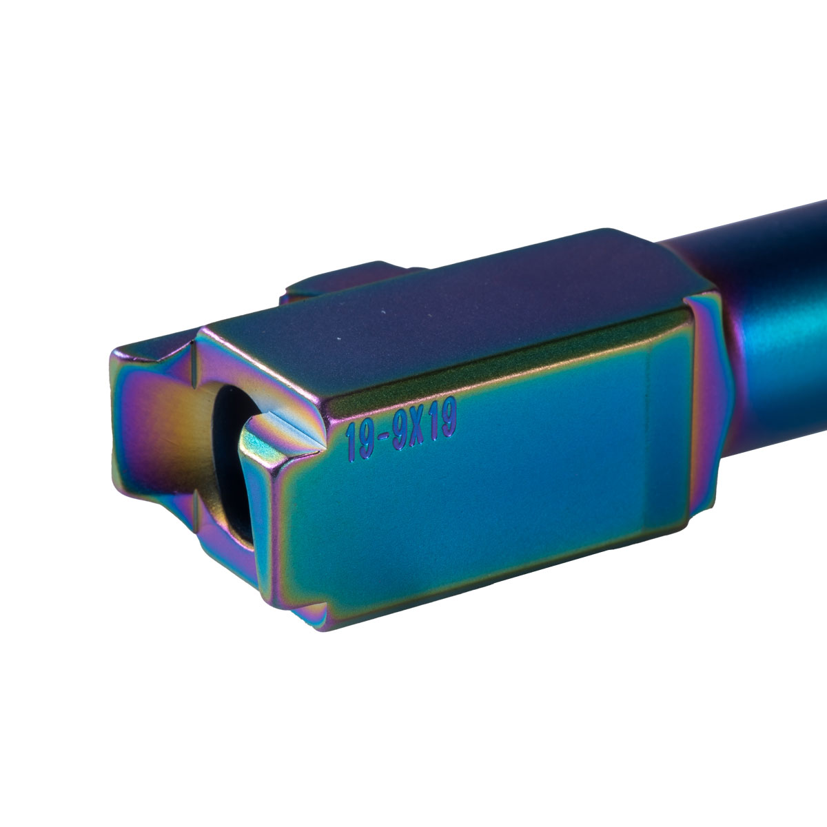 The Davidson Defense Glock 19 Compatible Flush Cut Crown Barrel is a high-performance barrel designed for enthusiasts seeking precision and reliability. Constructed from durable 416R stainless steel, this barrel features a striking rainbow finish achieved through PVD (Physical Vapor Deposition) technology, making it both visually appealing and resistant to wear. With a twist rate of 1:10, this barrel is optimized for stabilized flight paths of 9mm (9x19) projectiles, ensuring consistent accuracy.
