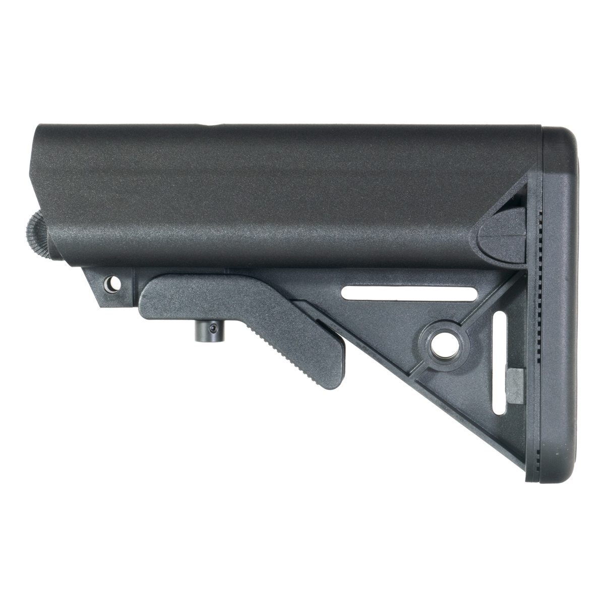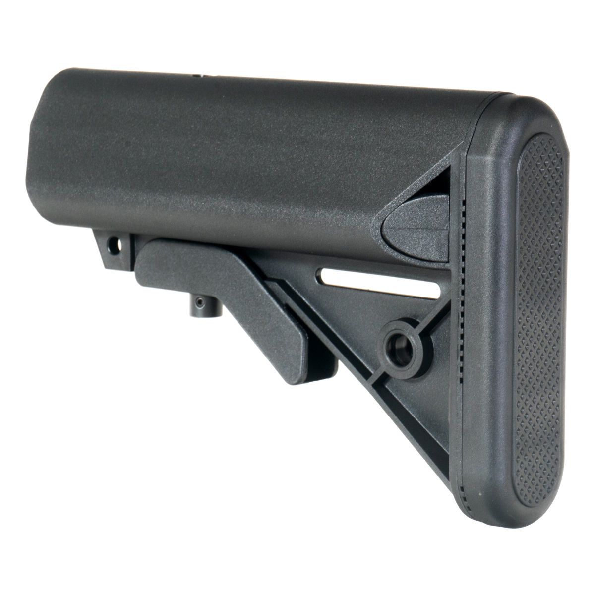 This collapsible stock is compatible with mil-spec carbine buffer tubes, allowing for easy installation and adjustment without the need for specialized tools or modifications. The mil-spec compatibility ensures this stock will fit standard AR-15 and AR-style rifles with carbine buffer tubes. With its adjustable length, the stock accommodates different body types and shooting styles, allowing you to customize the length of pull for improved comfort and shooting control. The ergonomic shape provides a comfortable shooting experience for extended use, with contours designed to fit naturally against the shoulder and cheek for consistent positioning and reduced fatigue.