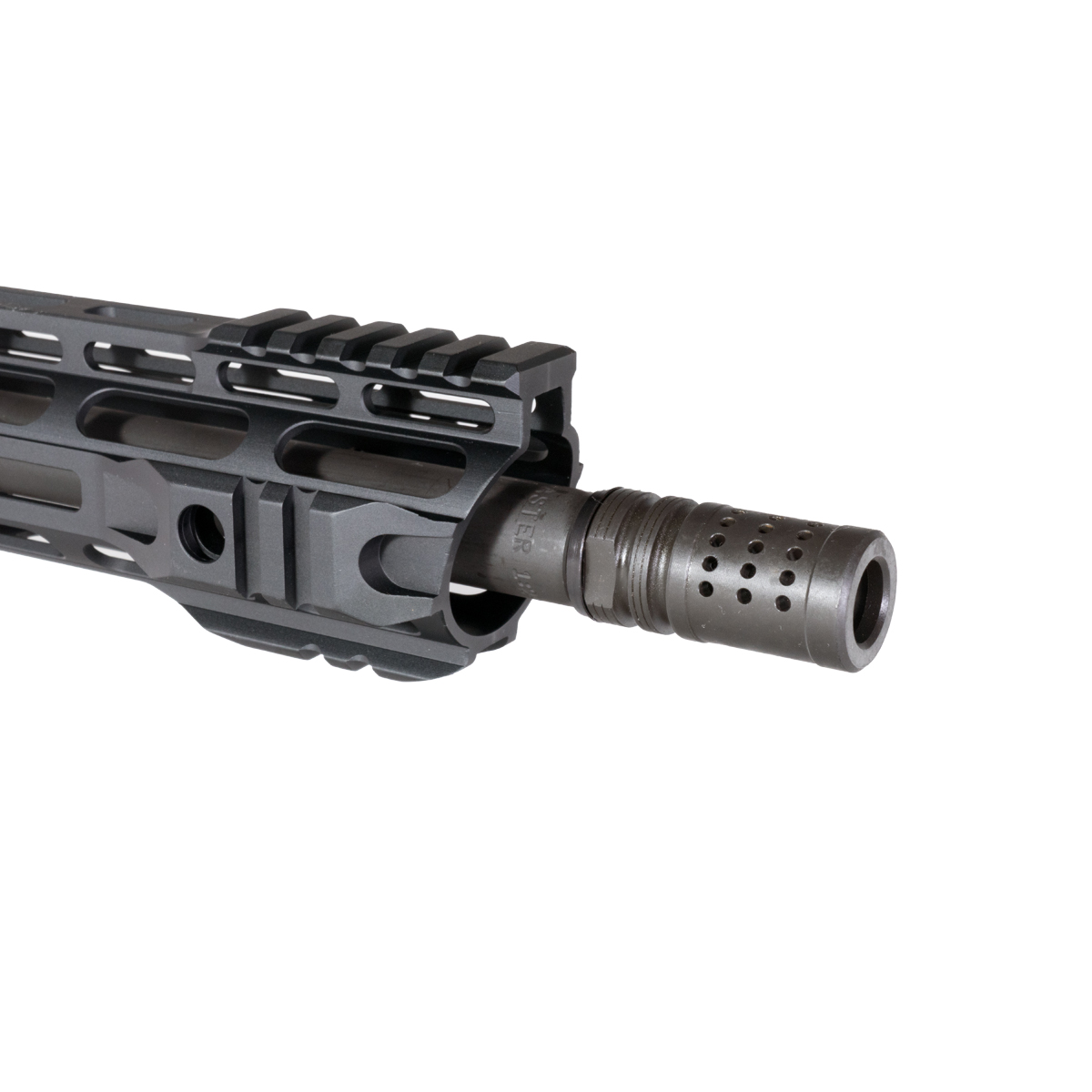 The Mid-Length gas system paired with the micro low-profile gas block delivers smoother cycling compared to carbine-length systems, reducing felt recoil from the powerful .450 Bushmaster cartridge. The KAK .458 compensator further mitigates muzzle rise and recoil, keeping you on target for faster follow-up shots.