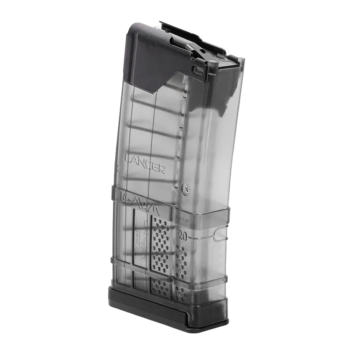 The Lancer Systems L5AWM GEN2 5.56x45 NATO 20-round magazine in Smoke is engineered for durability and lightweight performance essential for tactical applications. Constructed from high-quality polymer with precision-engineered hybrid feed lips, this magazine offers improved feeding reliability crucial for consistent firearm operation. The translucent Smoke body allows easy round count visibility, enabling users to quickly assess ammunition levels during engagements. This magazine holds 20 rounds and is compatible with various platforms including M4, M16, AR-15, SCAR16, HK416, SIG MCX, IWI Tavor, IWI X95, SA80, and similar STANAG pattern rifles. It features an anti-tilt follower that enhances feeding reliability and a stainless steel spring for long-lasting performance. The matte finish helps reduce glare and prevent reflection in tactical situations. Manufactured in the USA with a locking floorplate for secure assembly.