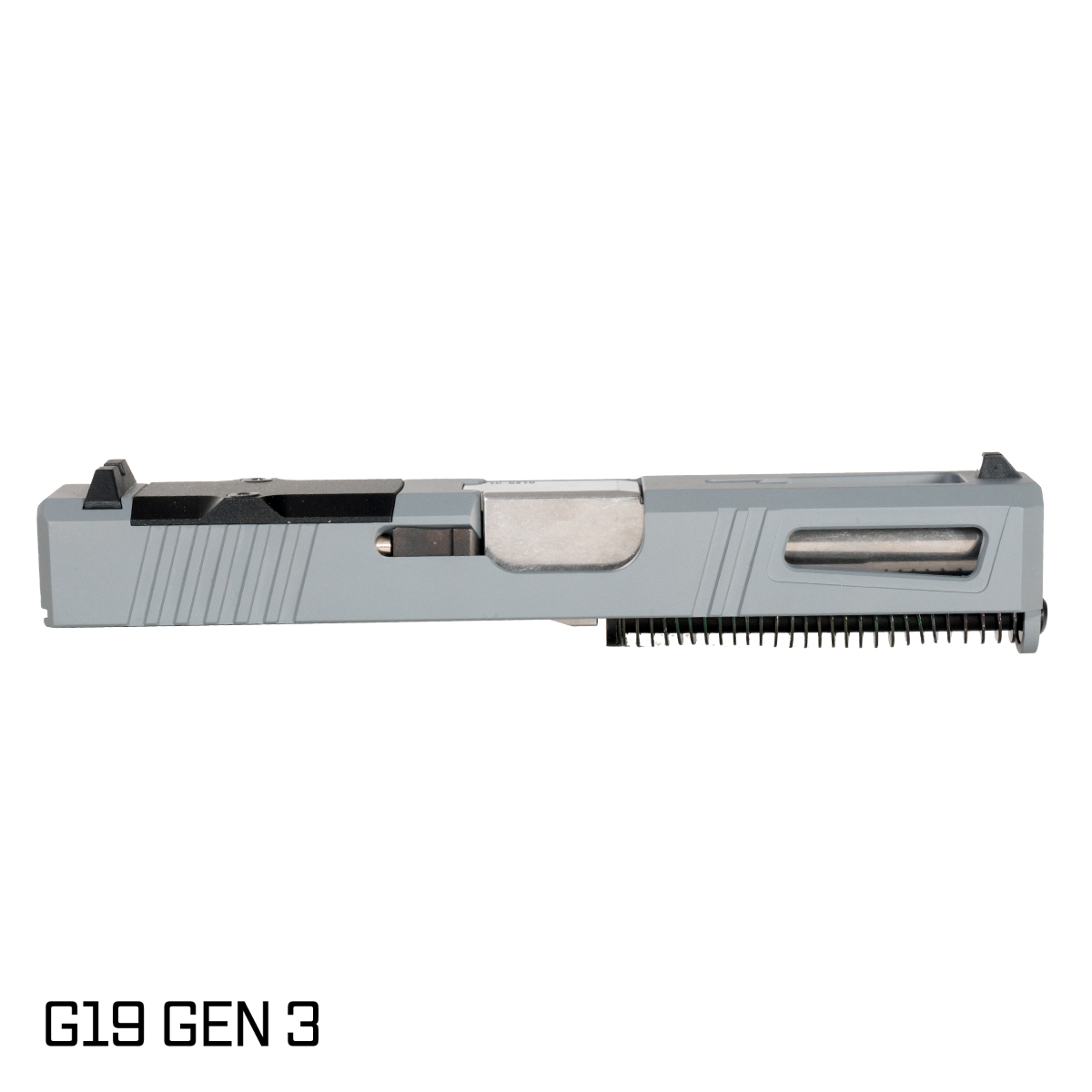 This kit includes a complete slide in an eye-catching Sniper Gray finish, utilizing durable 17-4 stainless steel and a Cerakote finish for added resilience against wear. The RMR compatibility allows for easy integration of optical sights, making this slide kit suitable for precision shooting. Whether for competitive use or personal defense, this complete slide kit and barrel combination offers a reliable upgrade for the G19 platform, enabling gunsmiths to achieve greater performance and precision in their builds.