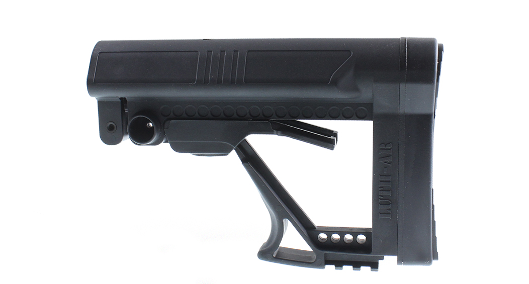 The Luth-AR MBA-5 Adjustable Stock delivers comfort, customization, and performance for AR-15 and AR-10/LR-308 platforms. Constructed from high-density polymer, this stock combines durability with lightweight characteristics ideal for marksmen and competition builds. The paddle-style adjustment lever enables rapid, precise length-of-pull changes for transitioning between shooting scenarios. A wide flared cheek rest provides comfortable, stable cheek weld for consistent accuracy and improved shooting control. Integrated Picatinny rail allows mounting mono-pods, lasers, or accessories for enhanced customization. Anti-rattle set screw ensures rock-solid fitment with mil-spec buffer tubes, maintaining stability during rapid fire. Compatible with both mil-spec and commercial buffer tubes across AR-15 and AR-10 platforms.