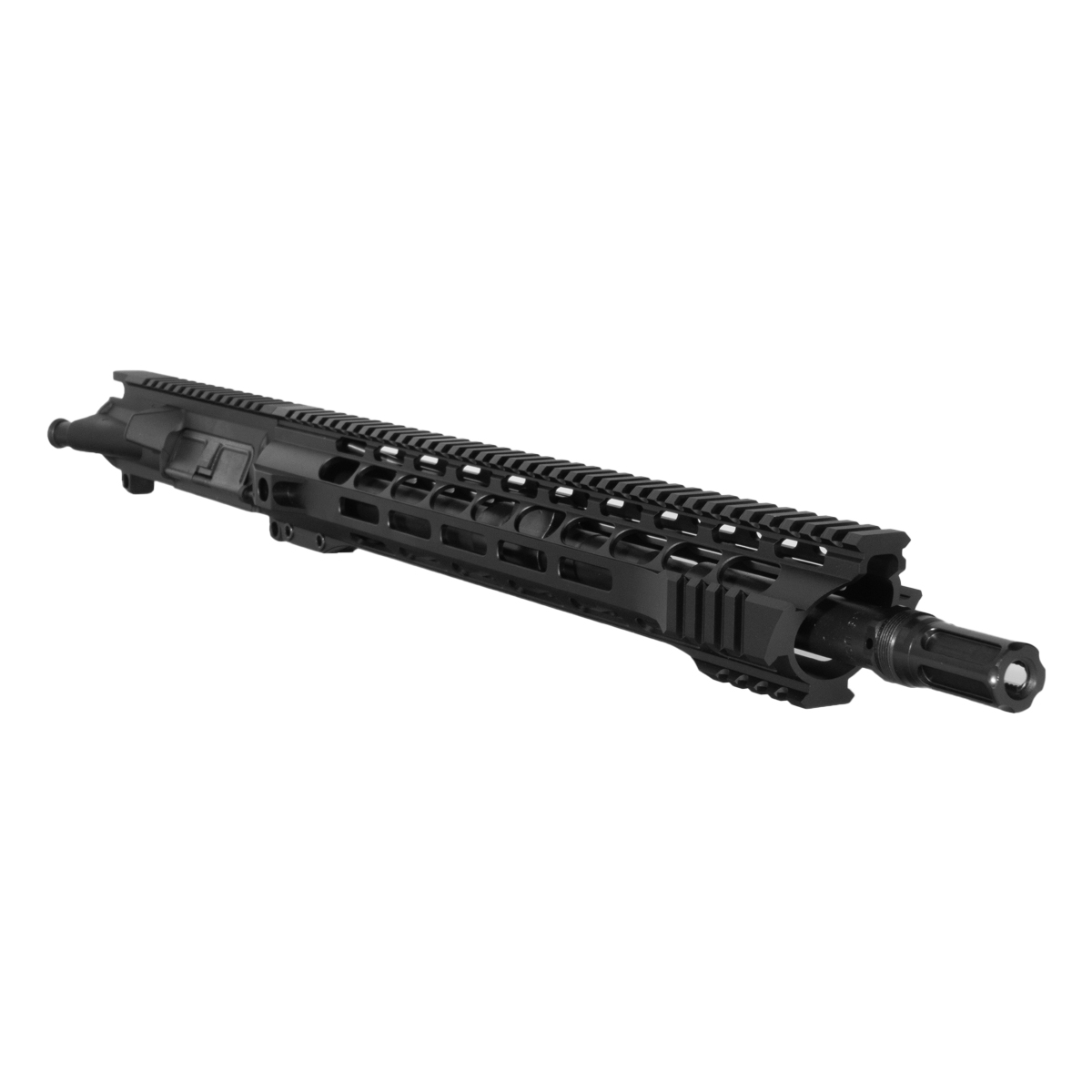 The 15-inch M-LOK Free Float Extended Quad Rail handguard, made from durable 6061-T6 aluminum with a black finish, allows for versatile accessory attachment. The upper receiver, featuring M4 feed ramps and constructed from 7075-T6 aluminum, ensures robust reliability. This full build kit combines essential components for creating a dependable .223 Wylde AR-15 platform.