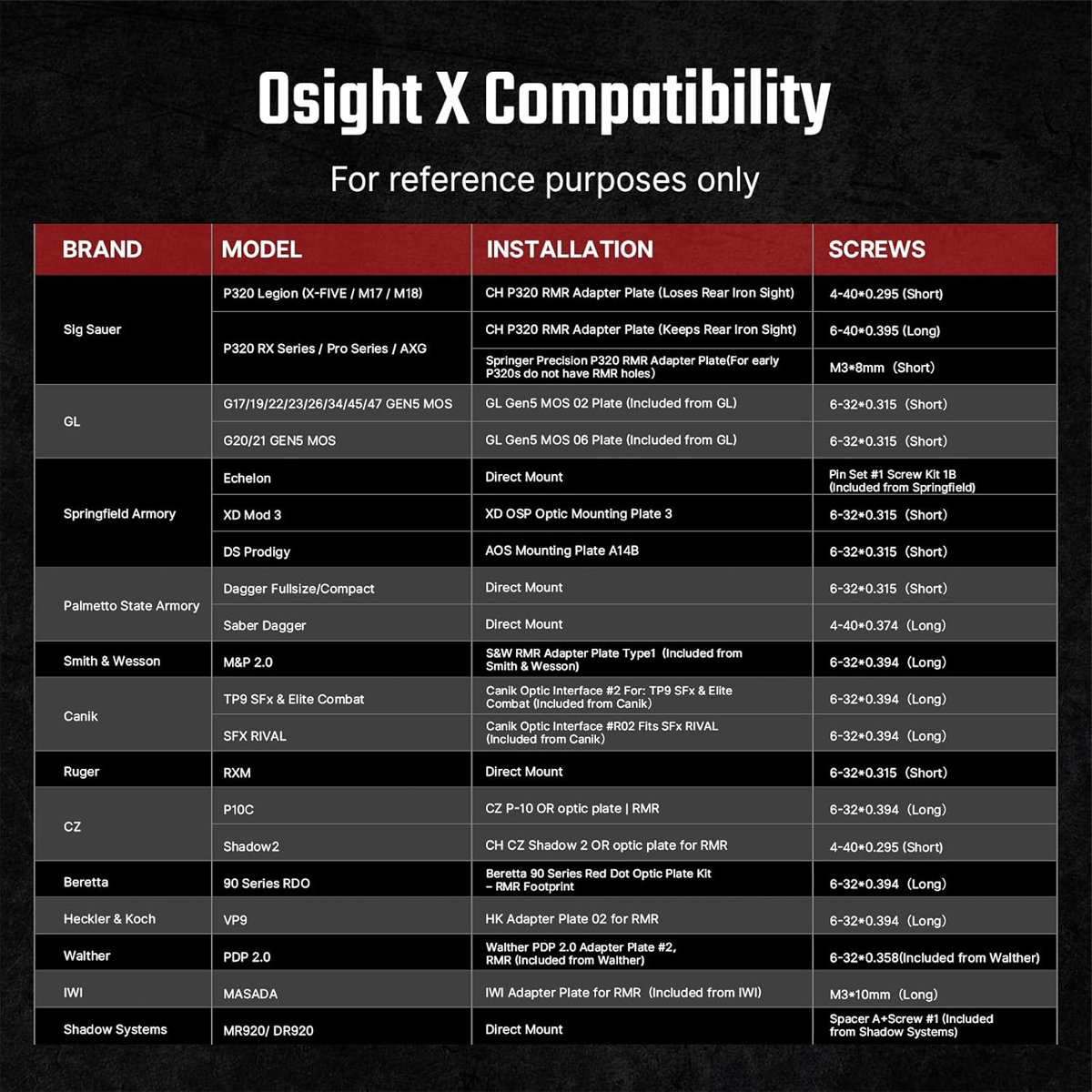Footprint / Mounting Pattern: RMR / Ruggedized Miniature Reflex (407C/507C) Footprint
