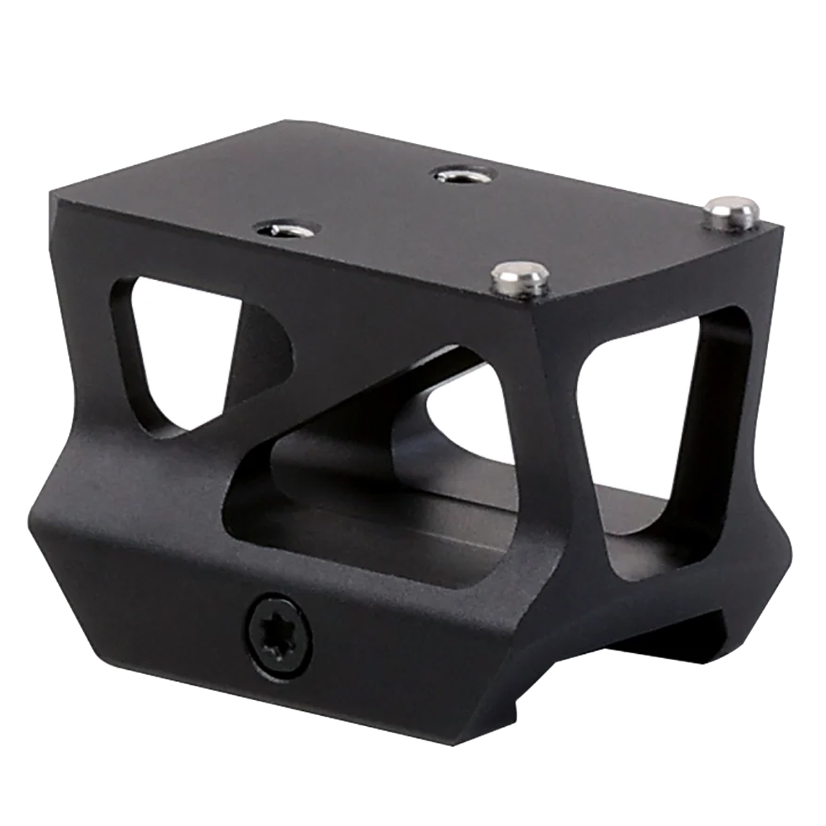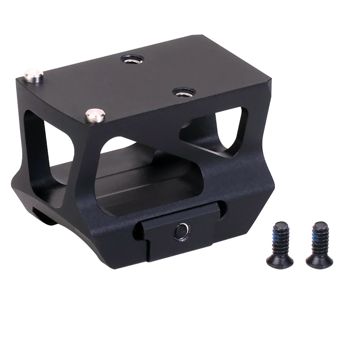 The design includes stainless steel socket screws and a recoil-proof pin for secure attachment. Weighing only 1.5 oz (42.3 g), this lightweight mount balances robust performance with minimal impact on overall load. Measuring 1.8 inches in length and compatible with a standard 21mm Picatinny rail (MIL-STD-1913), the Optic Riser Mount has a compact build, making it an ideal choice for any gunsmith seeking precision and reliability in their tactical setup. The compact and sturdy construction ensures it stands up to rigorous use.