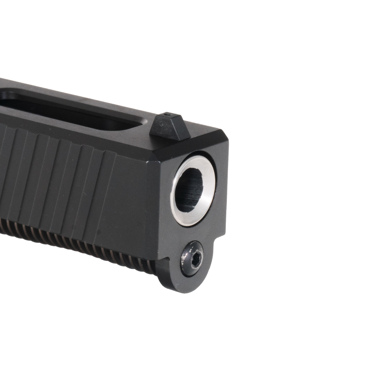The included barrel is a crown-cut ported polished stainless steel barrel, made from high-quality 416R stainless steel with a polished finish that offers both durability and aesthetic appeal. With a twist rate of 1:10, the barrel is calibrated for 9mm (9x19) cartridges, ensuring reliable operation and accuracy. This kit is a solid choice for gunsmiths looking to upgrade or customize their Glock G19.