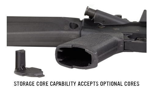 The ergonomic shape includes a subtle beavertail for enhanced hand support, fitting naturally in the hand for a more comfortable shooting experience. The built-in storage compartment combines functionality with streamlined aesthetics, allowing convenient storage for small items while maintaining the grip's clean profile.