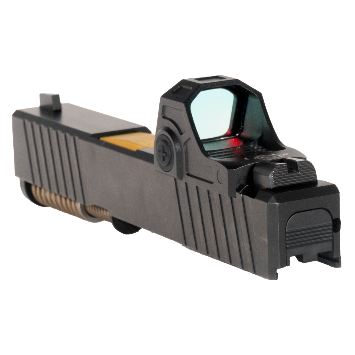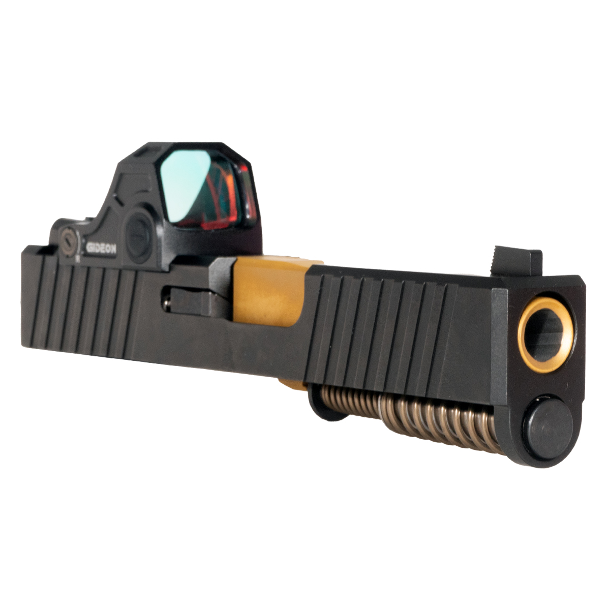 Integrated into the slide kit is the Gideon Optics Judge, equipped with an RMSC footprint and a 3 MOA red dot reticle, providing 8 daytime and 2 night vision brightness settings. The battery life extends up to 50,000 hours, powered by a CR2032 3V lithium battery. This robust slide kit from Davidson Defense is optimized for 9mm (9x19) cartridges, making it a practical choice for those valuing performance and precision in their firearms.
