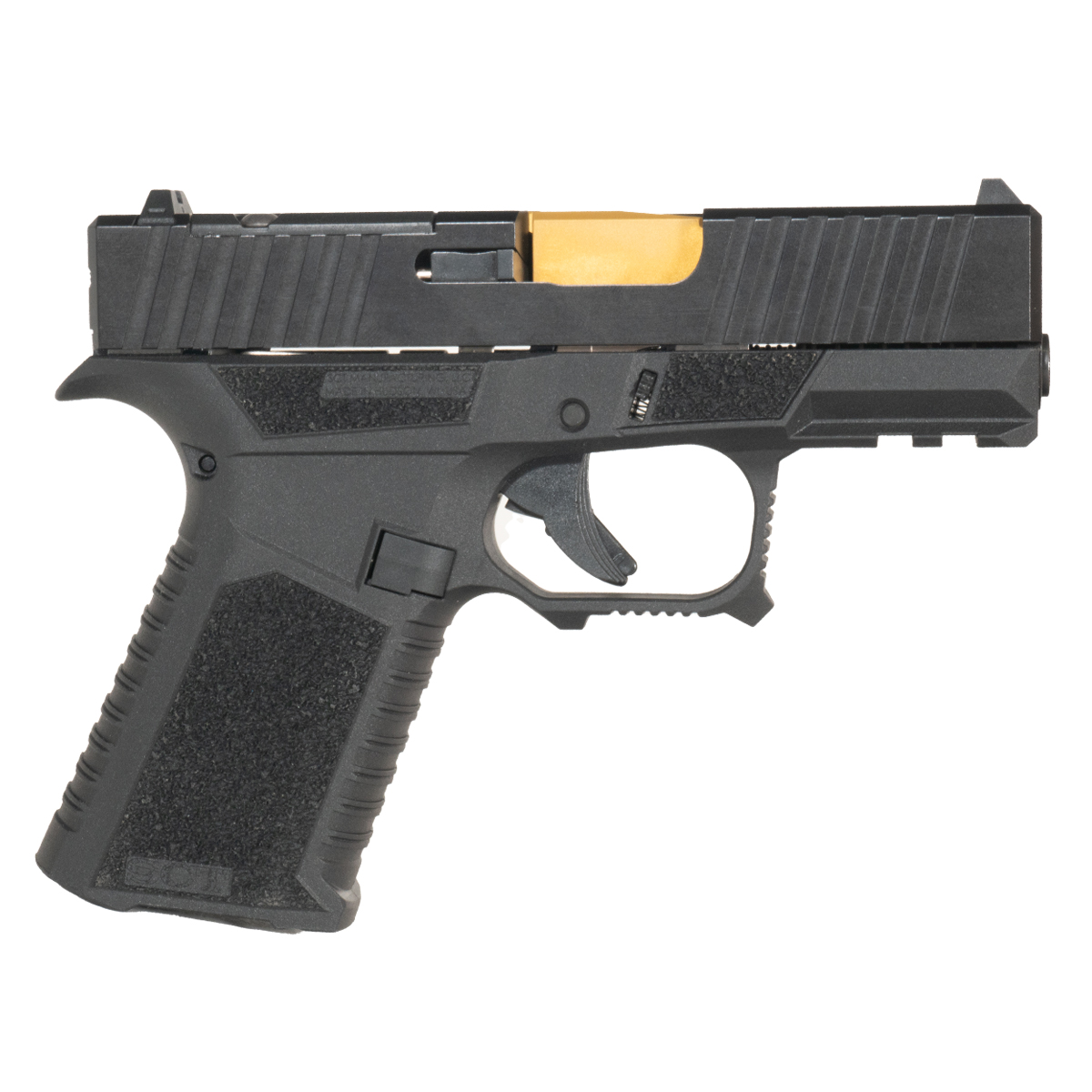 The slide is finished in black nitride, providing enhanced corrosion resistance and durability. It includes serrations at both the front and rear for improved handling during operation. This kit also features a low-profile front and rear short sight assembly for accurate aiming. Additionally, the RMSc cut with plate provides seamless optics integration, catering to modern shooting preferences. The metal guide rod adds further stability, making the Sentinel complete slide kit a comprehensive choice for G43 Compatible customization.