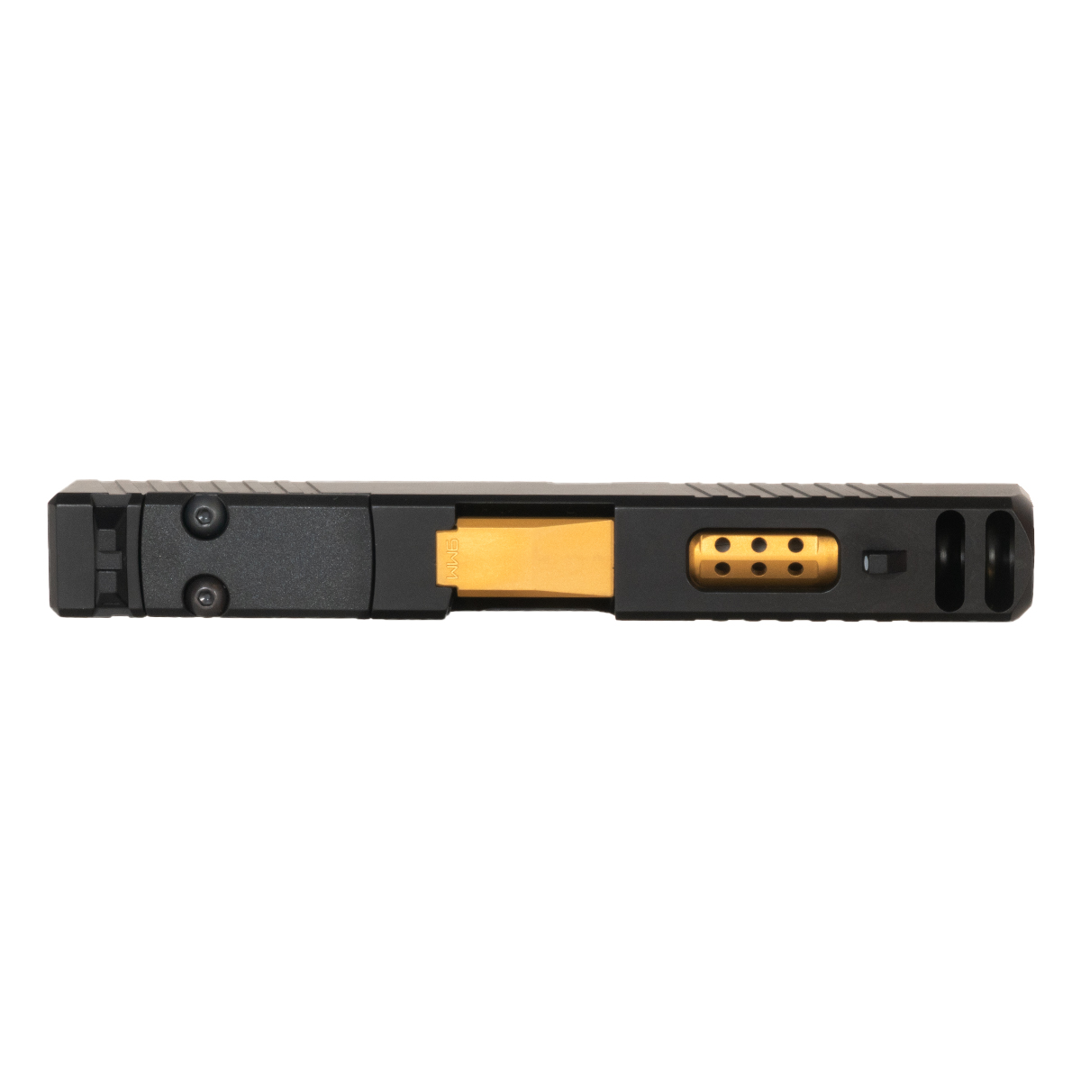 The Sentinel Ported Gold TiN Barrel G43 Compatible 9MM Black RMSc Integrated Compensator Complete Slide Kit from Davidson Defense is engineered for Glock 43 and 43X platforms. This complete slide kit features a high-quality steel slide with an N3 Black finish, offering durability and corrosion resistance. Its integrated compensator minimizes recoil and muzzle rise, improving shooting performance. Designed for compatibility with Shield RMSc or similar red dot optics, the slide includes a single window to reduce weight and enhance cycling speed. The front and rear serrations provide excellent grip for handling.