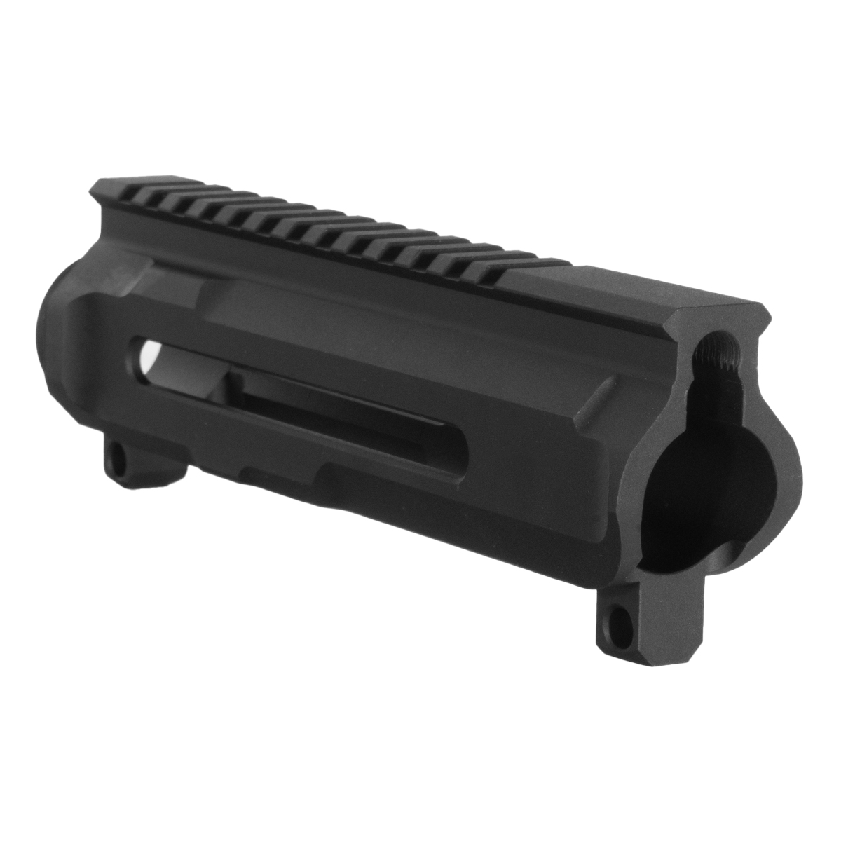 The Type III hard-coat anodized matte black finish ensures durability against wear and corrosion. Built to mil-spec AR-15 dimensions, this upper receiver is compatible with standard barrels, barrel extensions, and barrel nuts, simplifying installation on AR platforms. Weighing in at a lightweight, this upper receiver maintains structural integrity while providing essential features for any gunsmith or enthusiast who values precision and freedom in their builds.