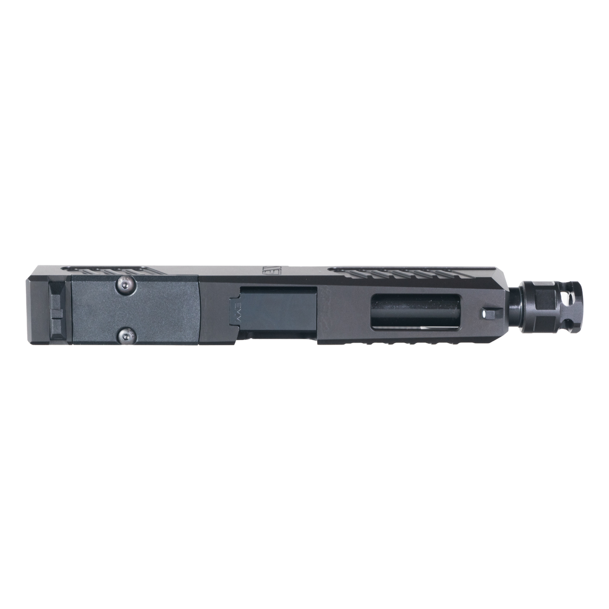 Disclaimer: This is a complete slide kit for Glock 19 Gen 1-3 pistols. Always follow safe handling practices and manufacturer instructions. Ensure compatibility with your specific Glock 19 generation before installation. Verify proper installation and function of all components including compensator before use. Recommend following all applicable laws and regulations for compensated and threaded barrel configurations.