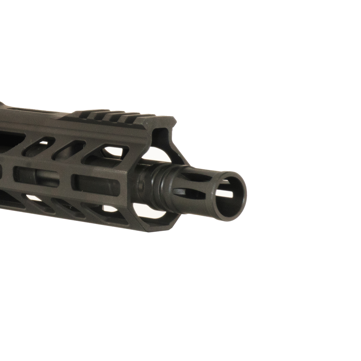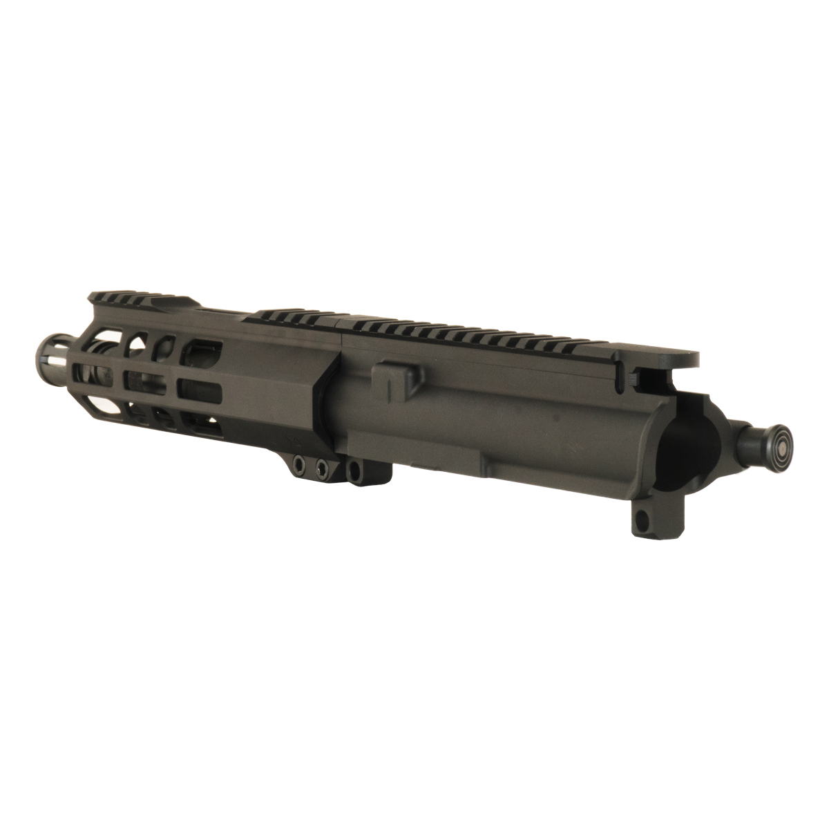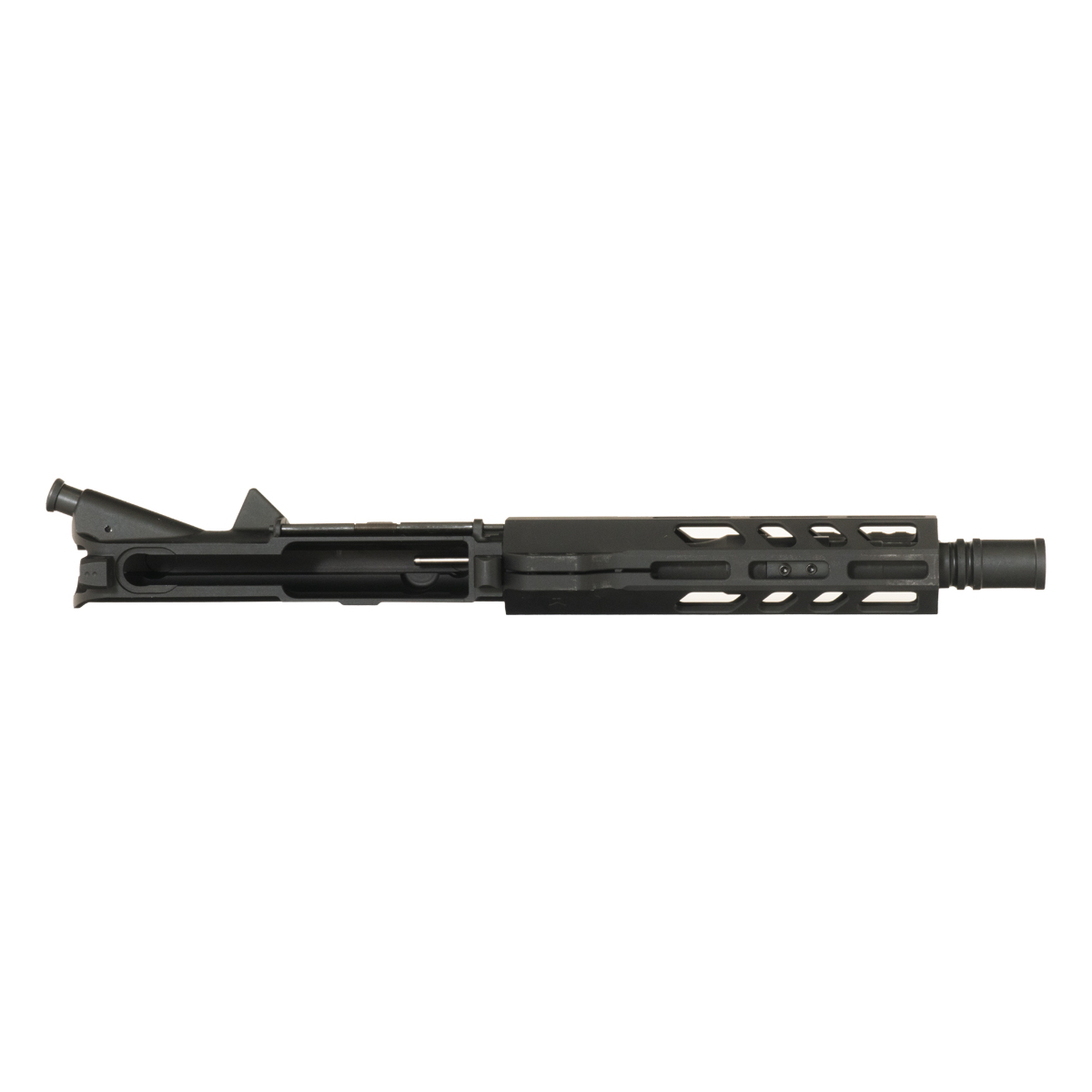 The True Blue 7.5-inch Pistol-Gas 1:7 5.56 NATO AR-15 Freefloat M-Lok Handguard Complete Upper Build offers precision and compatibility for serious firearms enthusiasts. Featuring a 7.5-inch "Irithyll" AR Pistol barrel made from durable 4150 Chrome Moly Vanadium steel, this upper is designed with a 1:7 twist rate, optimizing stability for a wide range of ammunition. The upper receiver is constructed from robust 7075-T6 aluminum with anodized finishing for added resilience.