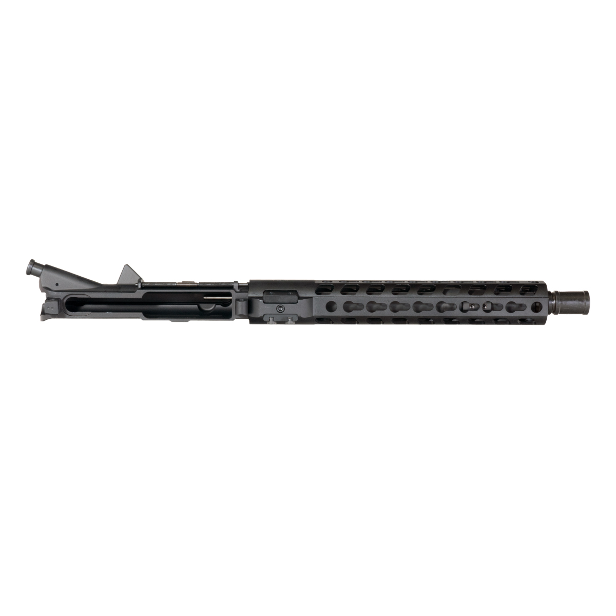 Premium Upper Receiver with Free Float Keymod Handguard: The upper receiver, made from anodized 7075-T6 aluminum—the same premium material specification used in military M4/M16 upper receivers—provides superior strength compared to 6061 aluminum alternatives. The anodized finish enhances protection against corrosion and wear while providing consistent, attractive appearance. The upper receiver includes M4 feed ramps for reliable feeding, which are extended feed ramp cuts that create smoother transition from magazine to chamber, reducing potential for feeding malfunctions and ensuring consistent performance under demanding conditions. The free float Keymod handguard, constructed from 7075-T6 aluminum, ensures lightweight yet robust platform for accessories while maintaining reduced weight for comfortable handling. The Keymod attachment system offers secure mounting points for tactical accessories including lights, laser sights, vertical grips, and hand stops, allowing versatile customization options. The free float design eliminates barrel contact, improving accuracy potential by preventing pressure points that can affect barrel harmonics during firing.