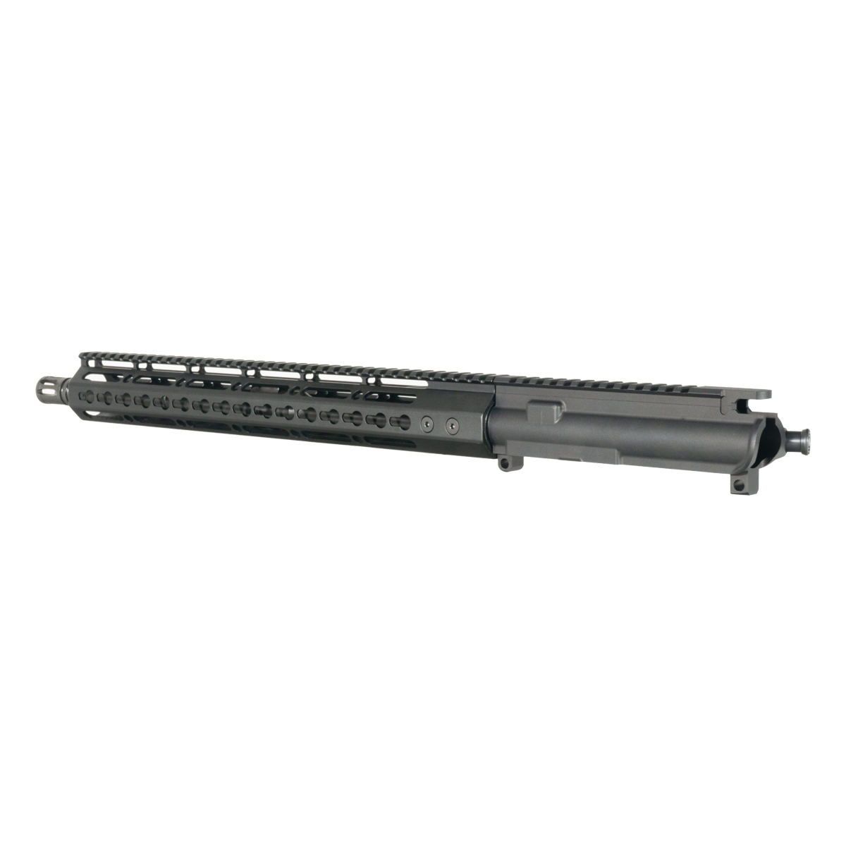 The 16-inch 6.5 Grendel barrel in this complete upper is constructed from 4150 CrMoV steel with a phosphate finish and a 1:8 twist rate. The 7075-T6 aluminum upper receiver carries an anodized finish corresponding to standard AR-15 upper receiver material specifications. The carbine-length gas system configuration corresponds to the 16-inch barrel profile included in this complete upper.