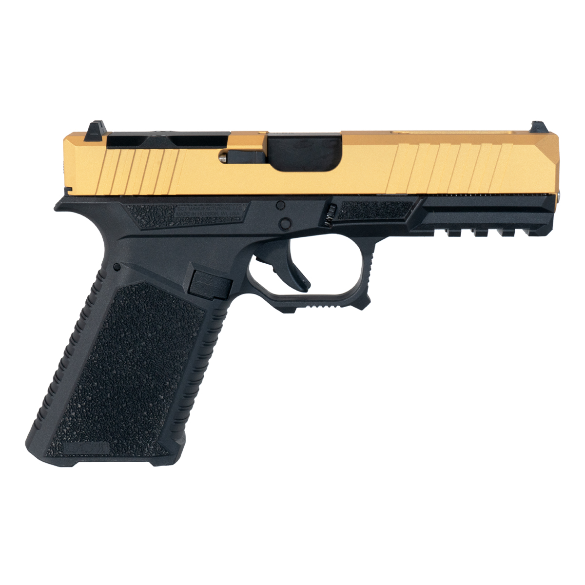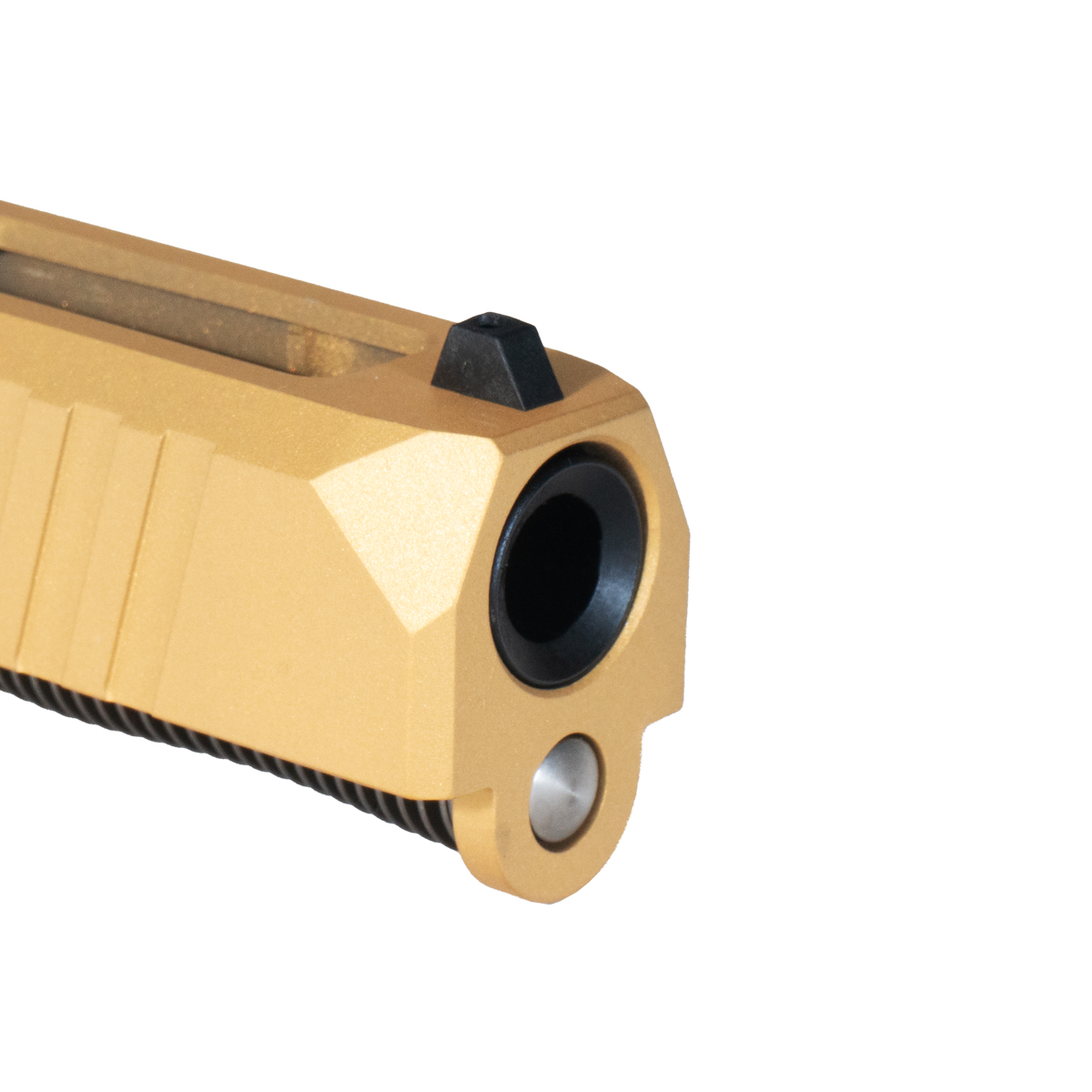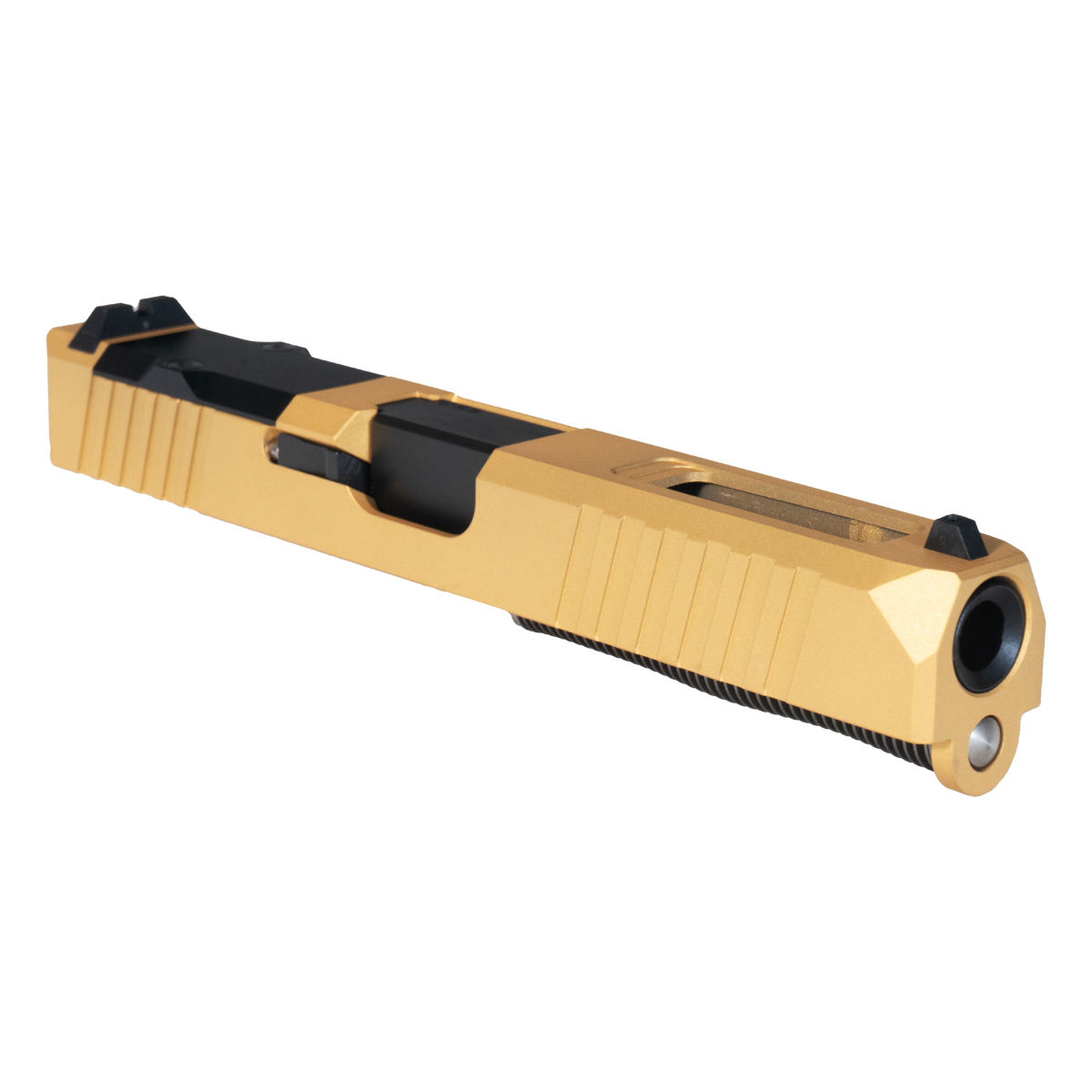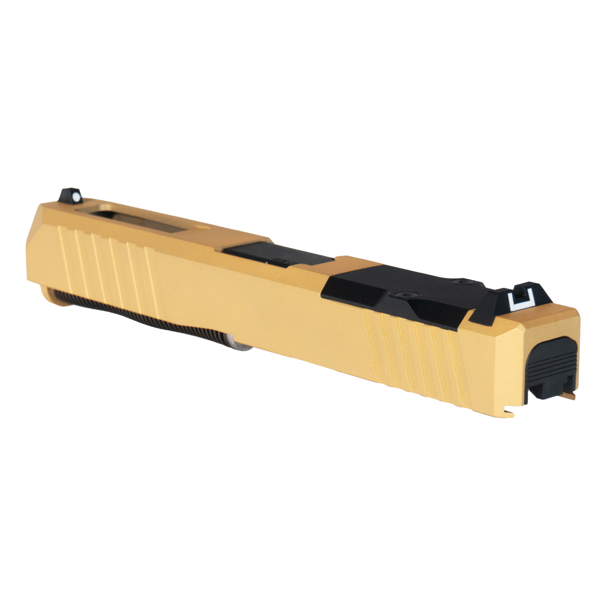 The DTT Stiffler MFG Wayfinder Crowned Nitride Barrel G17 Gen 1-3 Compatible 9MM Complete Slide Kit is engineered for Glock enthusiasts seeking reliability and precision. This complete slide kit features a Gen 1-3 compatible Turbo Slide constructed from durable 17-4 stainless steel, finished in a striking gold Cerakote. It boasts an RMR cut for easy optics integration and includes a cover plate for versatility.