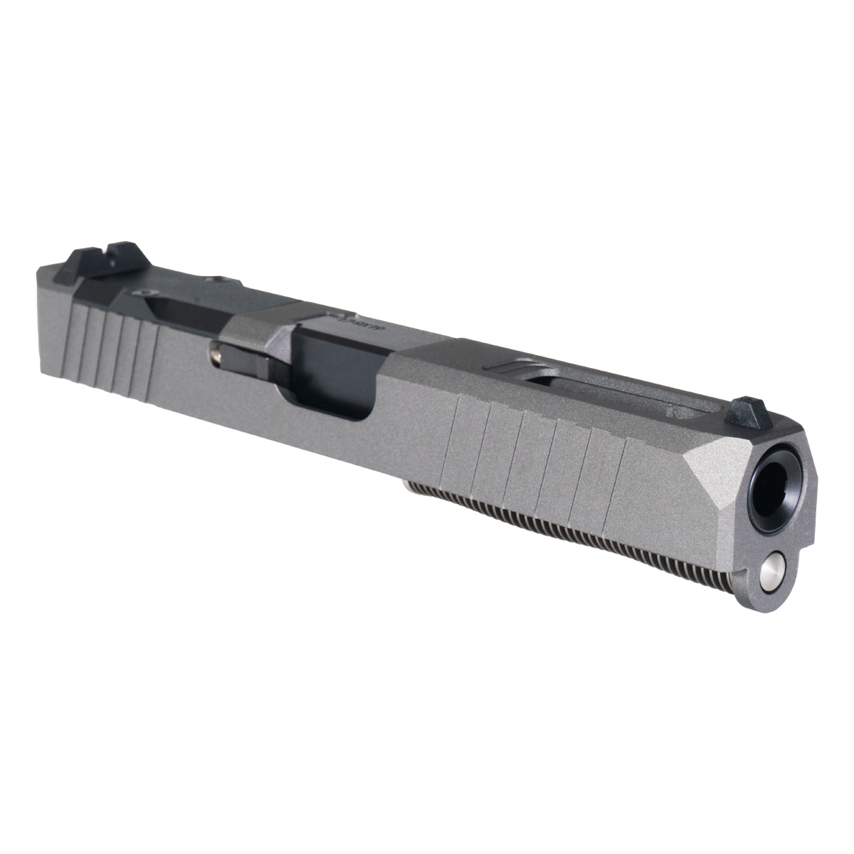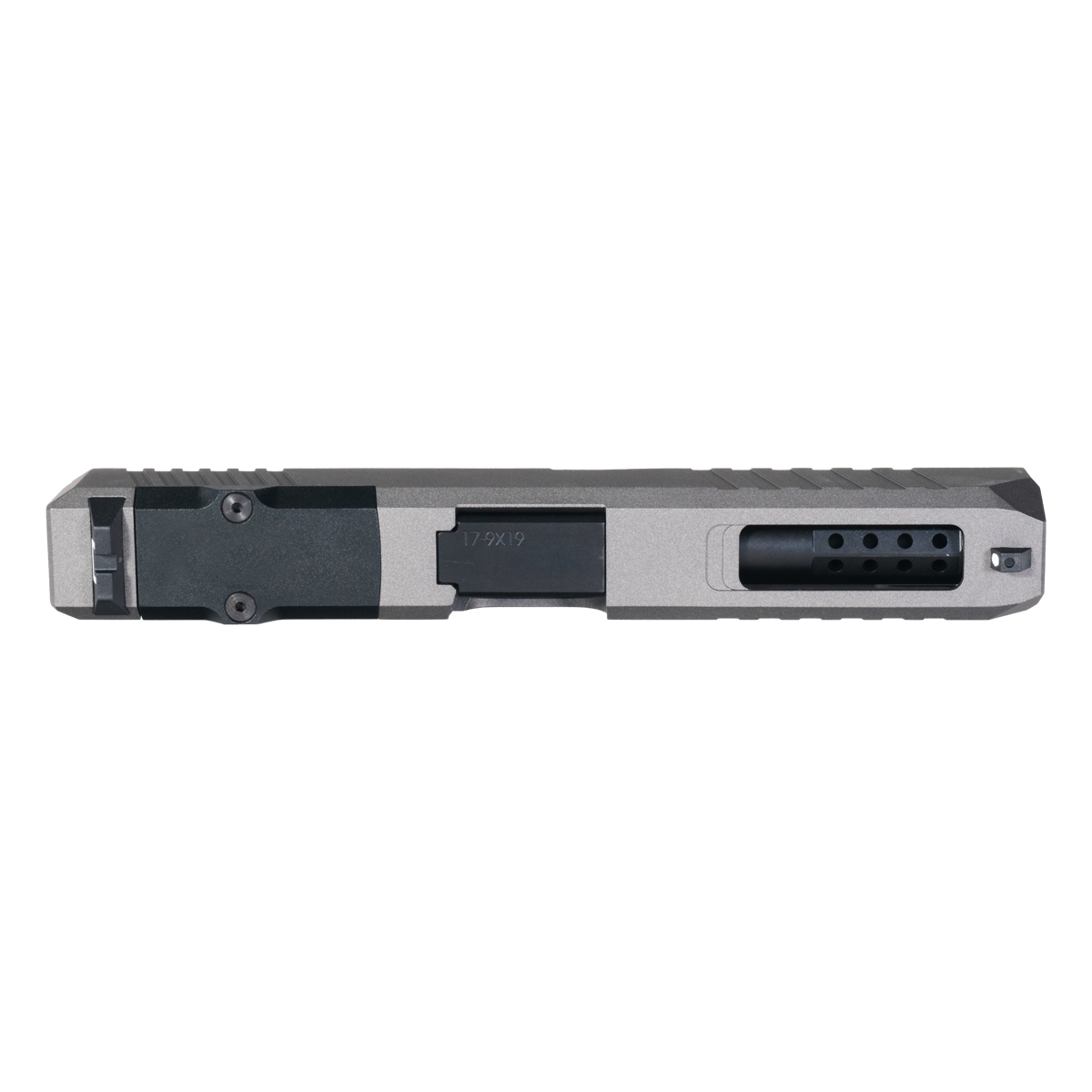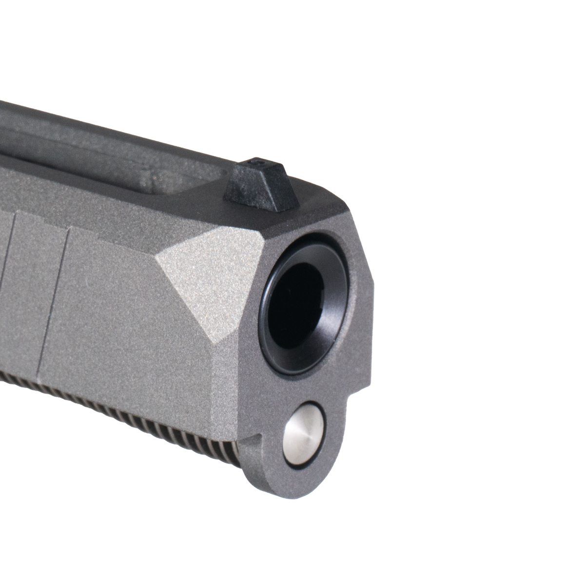 RMR Cut with Ported Nitride Barrel: The slide includes RMR optics cut for easy red dot sight mounting, accommodating RMR-pattern optics for improved target acquisition and faster shot-to-shot transitions. The included cover plate provides customization options, allowing use with iron sights until optic installation. The ported nitride barrel is designed for 9MM (9x19) caliber with ports machined into the barrel to redirect propellant gases upward, aiding in recoil management and improving shot recovery for faster follow-up shots. The black nitride finish provides superior wear resistance and corrosion protection while maintaining the barrel's dimensional accuracy for consistent precision.
