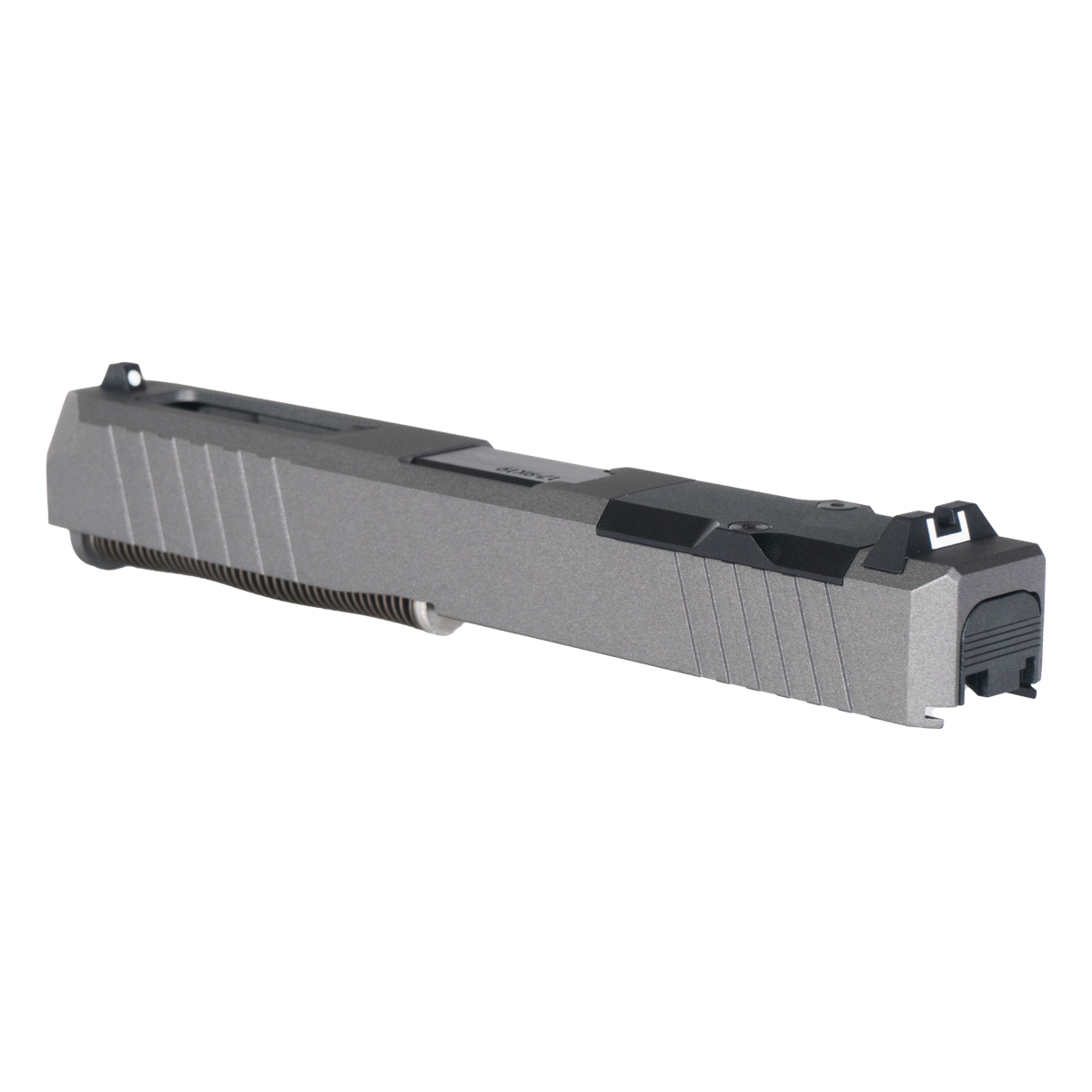 Polymer Iron Sights for Backup Capability: Polymer front and rear iron sights are integrated, providing solid aiming solution and backup sighting capability when used with red dot optics. The polymer construction offers durability and weather resistance while maintaining lightweight characteristics. These sights provide reliable aiming reference for defensive shooting and serve as co-witness backup sights when RMR optics are installed, maintaining aiming capability if the red dot fails or loses battery power. The DTT Stiffler MFG Wayfinder Ported Nitride Barrel Complete Slide Kit is designed for competition shooters and gunsmiths seeking performance-oriented Glock 17 upgrades—combining durable 17-4 stainless steel Turbo Slide construction, tungsten Cerakote finish, RMR optics cut with cover plate, ported nitride barrel for recoil management, and polymer iron sights in a complete package that delivers enhanced shot recovery, distinctive styling, and competition-grade performance ideal for Glock 17 Gen 1-3 builds requiring reduced recoil and faster follow-up shot capability.