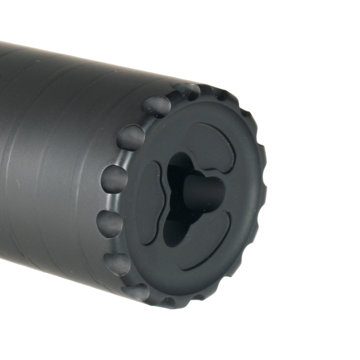 The tubeless design eliminates the traditional outer tube found in many suppressors, reducing overall weight to 13 ounces while maintaining the structural strength needed for full auto rated performance. This construction approach delivers durability without the added mass of conventional tube-based designs.